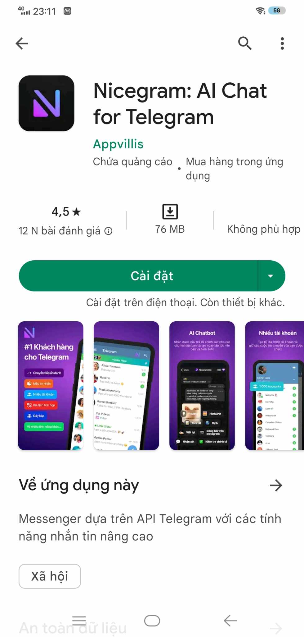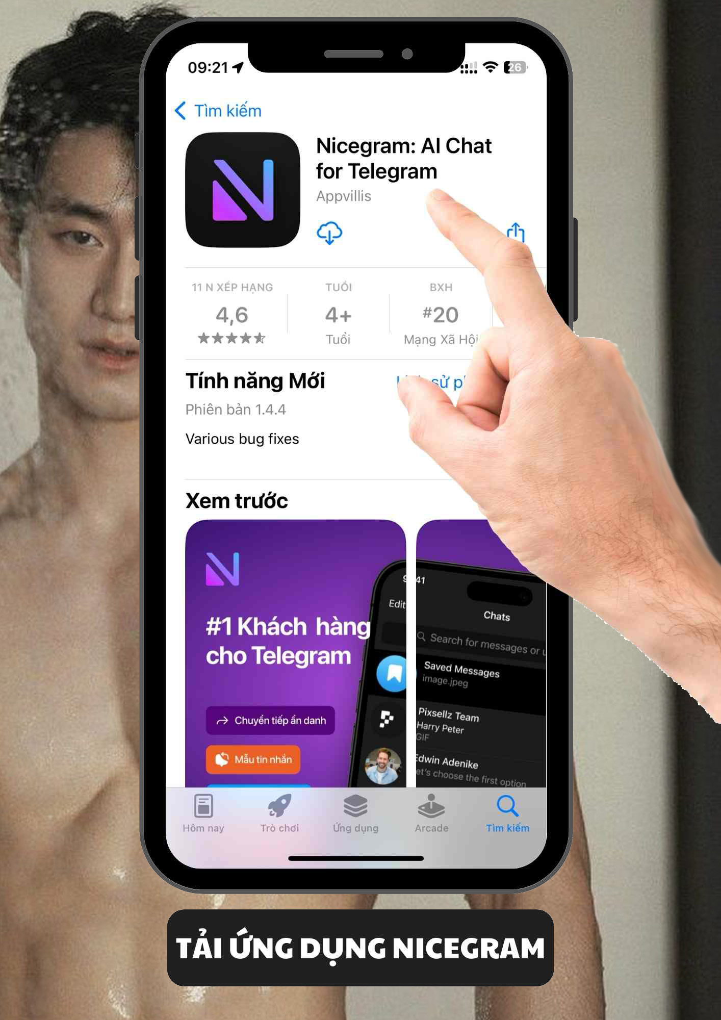 Hãy tìm kiếm ứng dụng Nicegram và tải về máy y như cách bên trên nhé.