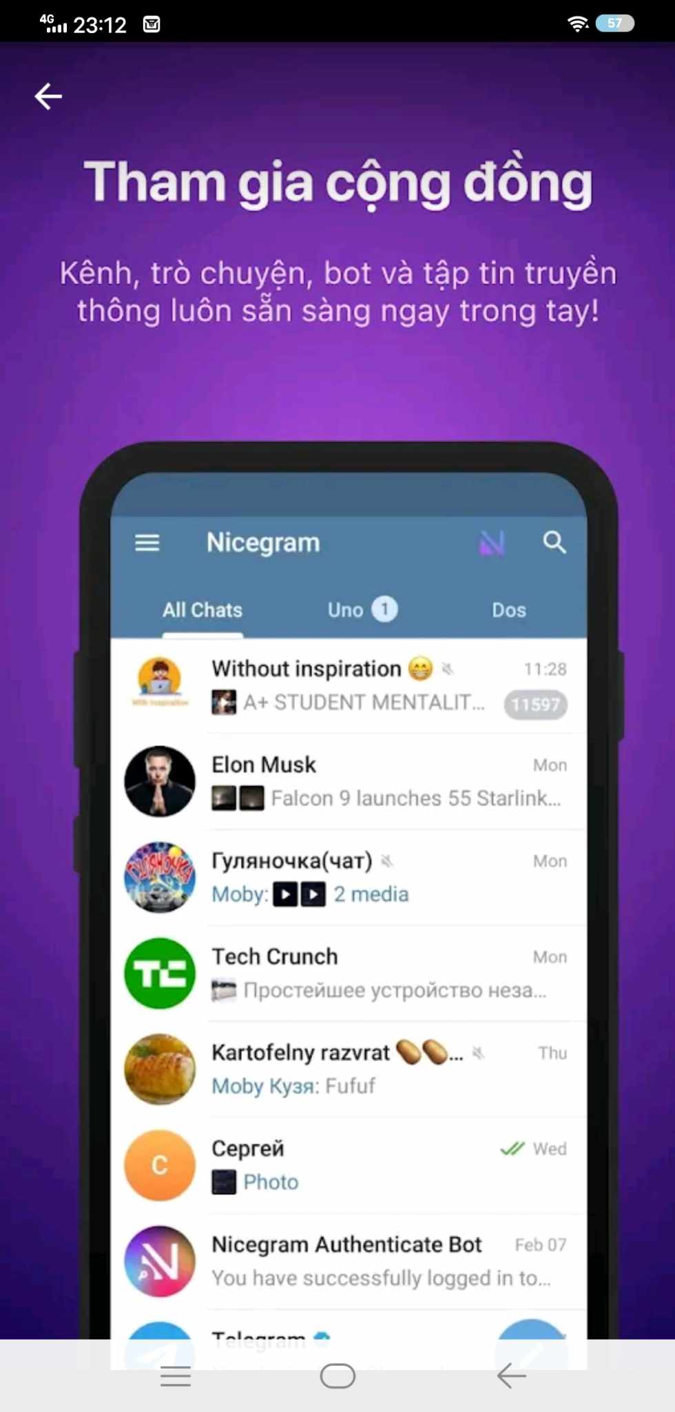 Lúc này ứng dụng Nicegram đã liên kết với tài khoản Telegram của bạn rồi. Chúng ta có thể xem tha hồ những gì mình thích đó.
