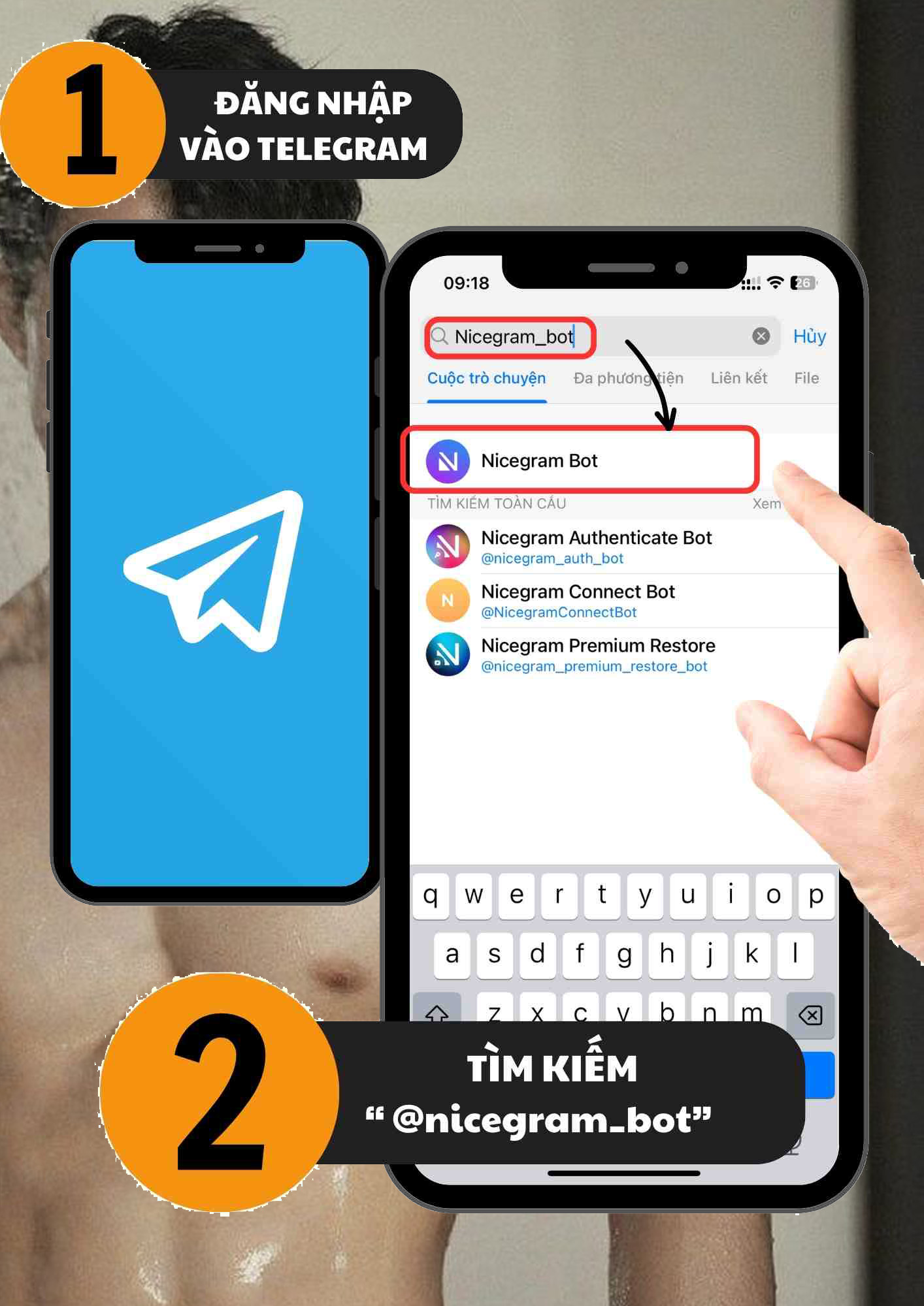 Bước tiếp theo hãy đăng nhập vào app TELEGRAM của bạn và gõ từ khóa tìm kiếm “Nicegram_bot” nào