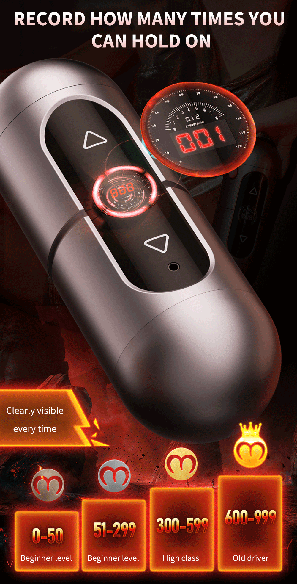 – Màn hình LCD thể hiện số lần rung nhấp, hãy thử xem bao lâu thì bạn không thể nhịn nổi và phải xuất tinh nhé.