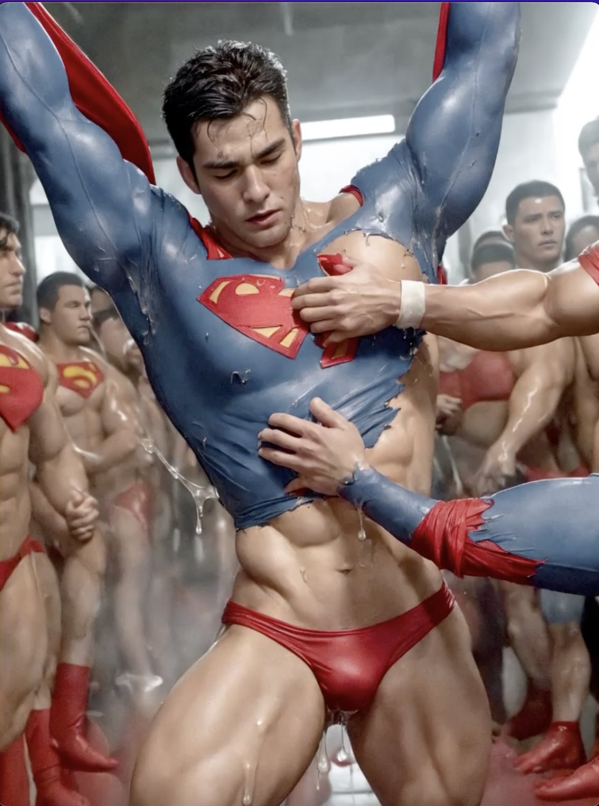 Khi anh ta bị mất sức mạnh và không thể đối đầu được với kẻ thù và bị kẻ thù bắt đầu mân mê cơ thể cũng như quần sịp mỏng manh của anh ta như thể sắp quan hệ sex gay thì sẽ ra sao nhỉ.